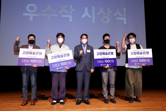 [부자동네타임즈 김인수기자] 고양문화재단(이사장 이재준)은 지역 예술인들의 코로나19 극복을 응원하기 위하여 진행한 2021 고양예술은행의 최종 프로젝트 선정식을 10월 6일 고양아람누리 새라새극장에서 진행하였다. 고양예술은행은 2020년부터 진행된 코로나19 시대 지역예술인 지원 사업으로, 공연, 시각, 전통, 공감 등 전 예술 분야의 지역 전문예술인들이 코로나19에서 실행 가능한 기획안을 공모하는 사업이다. 최종 선정된 프로젝트에는 각 100만원의 상금이 제공되며 올해 총 32건의 프로젝트가 선정되었다.