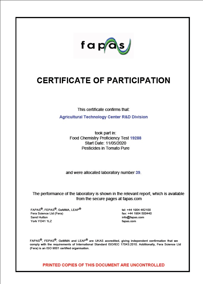 영국 식품환경청(FARA)의 ‘FAPAS(Food Analysis Performance Assessment Scheme)’는 세계 각국의 정부기관, 연구소, 민간 분석기관 등이 분석능력을 검증받는 국제적으로 손꼽히는 프로그램이다. 이번 평가에는 전 세계 90개 식품분석기관이 참여했으며, 고양시 농업기술센터는 ‘만족’ 등급을 받아 국제적으로 식품분야 분석능력을 인정받았다.
