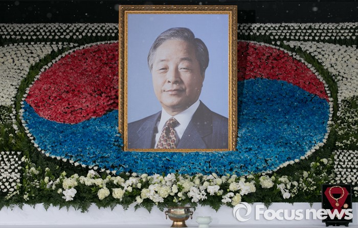 △ 지난 26일 오후 서울 여의도 국회에서 엄수된 고(故) 김영삼 전 대통령 영결식에 고인의 영정사진과 무궁화대훈장이 놓여 있다.  <사진제공=포커스뉴스>