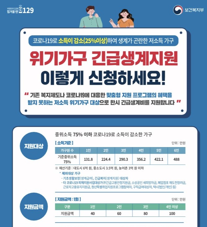 지원금은 신청자에 대한 위기사유 인정기준 및 소득·재산 조사를 거쳐 12월 중 일괄 지급될 예정이다. 가구원 수에 따라 40만 원에서 최대 100만 원까지 1회에 한해 지급된다.
