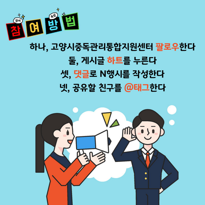 고양시중독관리통합지원센터는 N행시 짓기 응모자 중 추첨을 통해 모바일 쿠폰을 선물로 전달한다. 추첨 결과는 12월 7일 인스타그램 게시 및 개별 통보할 예정이다.