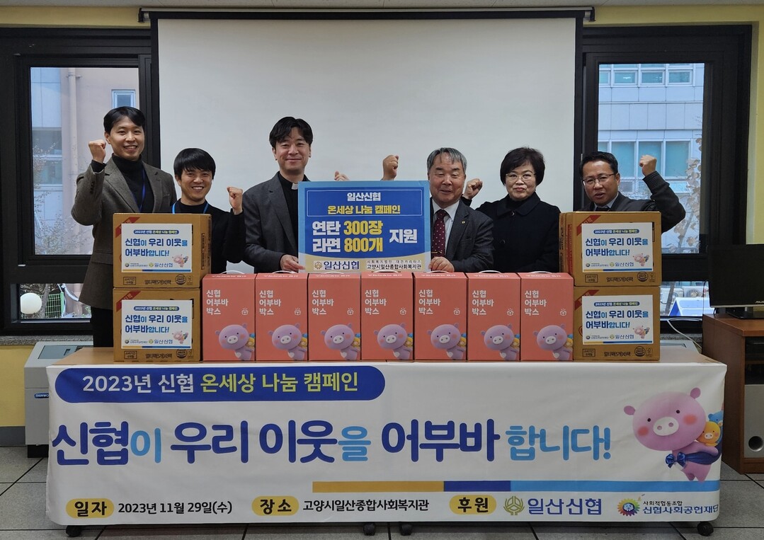 11월 29일 일산신협(이사장 임은택)이 ‘온세상 나눔캠페인’으로 취약계층에게 연탄 300장, 라면 800개를 일산종합사회복지관에 후원했다. 신협은 ‘온세상 나눔캠페인’을 실시해 매해 사회적 나눔을 실천하고 있다.