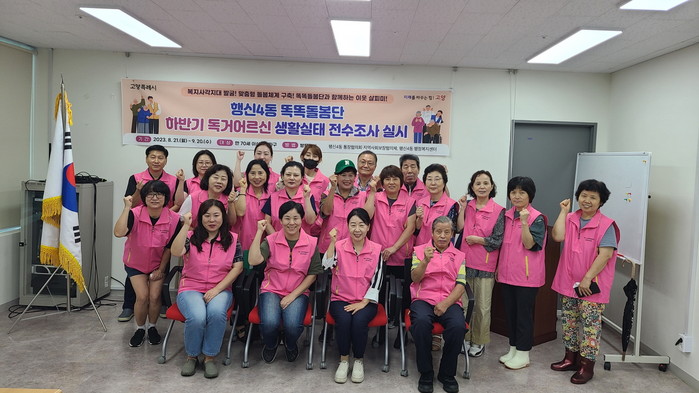 지난 3월 행신4동 똑똑돌봄단은 3주에 걸쳐 관내 70세 이상 독거어르신 790명의 생활실태 전수조사를 실시했다. 이번에는 전출자 등을 제외한 730여 명을 대상으로 2차 조사를 실시할 예정이며, 어르신들의 건강 상태, 주거환경, 희망 지원 서비스 등을 물어보고 혼자 계시는 어르신의 말벗이 되어드릴 예정이다.