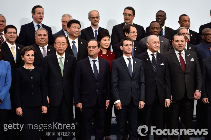 | △ (파리/프랑스=게티/포커스뉴스) 프랑스 파리에서 30일(현지시간) 열린 제21차 유엔기후변화협약 당사국총회(COP21) 개막식이 끝난 후 각국 정상들이 기념촬영을 준비하고 있다. ⓒ게티이미지/멀티비츠 photo@focus.kr |
