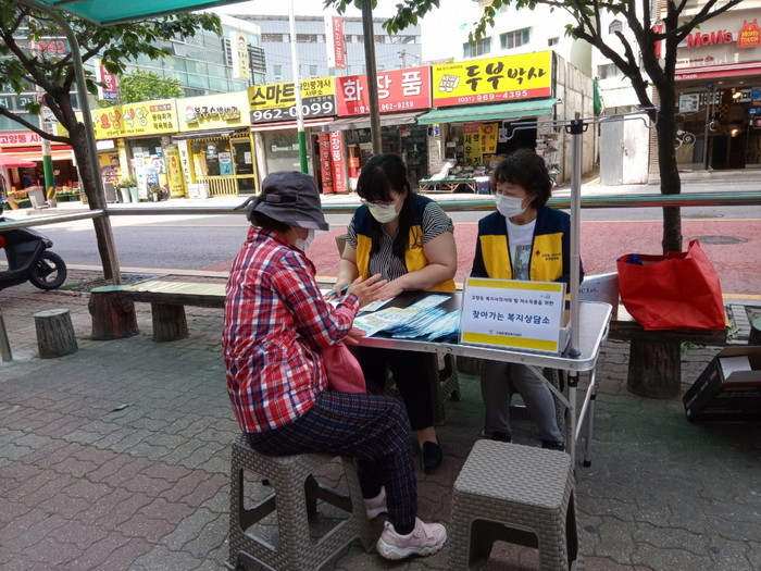 이번 복지상담은 복지제도 홍보와 더불어, 도움이 필요하지만 행정복지센터로 내방이 어려운 주민들을 위해 직접 현장에서 상담 서비스를 실시했다. 또한 코로나19 상황을 고려해 손소독제와 마스크 등을 홍보 물품으로 배부했다.