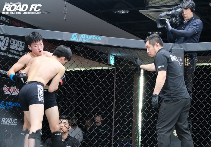 심판들도 프로 무대와 동일하다. ROAD FC 프로 대회를 진행하는 심판들이 선수들이 출전하기 전 복장과 안전 장비를 체크한다각 리그마다 룰이 다르기 때문에 룰도 직접 시범을 보여주며 설명한다경기에 돌입하면 케이지 위에서 주심이 경기를 진행하고케이지 사이드에서 3명의 심판이 점수를 체크하고판정도 실시간으로 이루어진다위험한 상황이 나올 때 가장 먼저 케이지 위에서 경기를 중단하고 선수를 보호하는 것이 심판의 역할이다.
