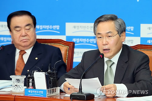 | △ 모두발언하는 우윤근 (서울=연합뉴스) 진성철 기자 = 새정치민주연합 우윤근 원내대표가 2일 국회에서 열린 비상대책위원회의에서 모두발언하고 있다. 왼쪽은 문희상 비상대책위원장. |
