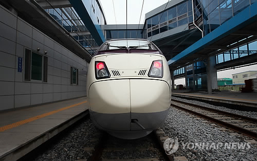 △ 개막 앞둔 '호남고속철도' 시대 (광주=연합뉴스) 한종찬 기자 = 한국철도시설공단이 충북 오송 ~ 광주 송정 간 182.3km의 호남고속철도를 오는 3월 개통한다. 이번 신설 노선 개통으로 KTX이용시 서울에서 광주 송정역까지 기존보다 66분 단축된 1시간 33분 만에 이동할 수 있게 된다. 사진은 14일 광주 송정역에 정차한 호남고속철. 2015.1.15 saba@yna.co.kr