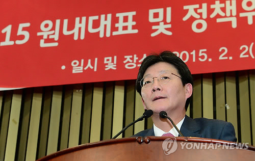 | △ 유승민 새누리 새 원내대표 수락연설 (서울=연합뉴스) 이상학 기자 = 새누리당 유승민 의원이 2일 국회에서 열린 의원총회에서 새 원내대표로 선출된 뒤 수락연설을 하고 있다. |