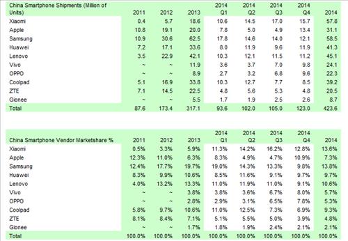 업계에서는 애플이 대화면의 아이폰6 시리즈로 지난해 4분기 사상 최대의 실적을 낸 점을 고려하더라도 4분기 중국 시장에서의 1-2위 싸움은 삼성과 샤오미의 재대결이 될 것이라는 관측이 많았다.