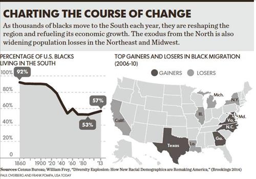미국 일간지 USA 투데이는 남부로 회귀하는 흑인이 늘고 있다며 관련 수치와 그 이유를 2일(현지시간) 자세하게 분석했다.