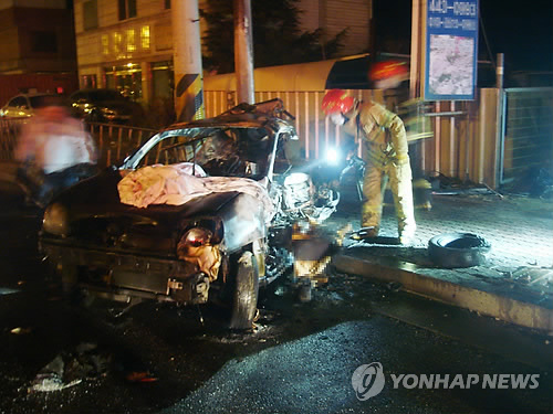 이 때문에 아토스 운전자 주모(35)씨와 신원이 확인되지 않은 여성 3명 등 탑승자 4명이 모두 불에 타 숨졌다.