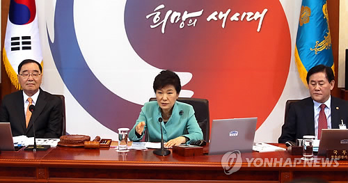 △ 국무회의서 발언하는 박 대통령 (서울=연합뉴스) 도광환 기자 = 박근혜 대통령이 3일 오후 청와대에서 열린 국무회의에서 현안에 대해 발언하고 있다.