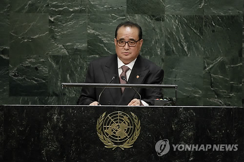 △ 작년 9월 유엔총회에 참석해 연설하는 북한 리수용 외무상 (AP=연합뉴스)