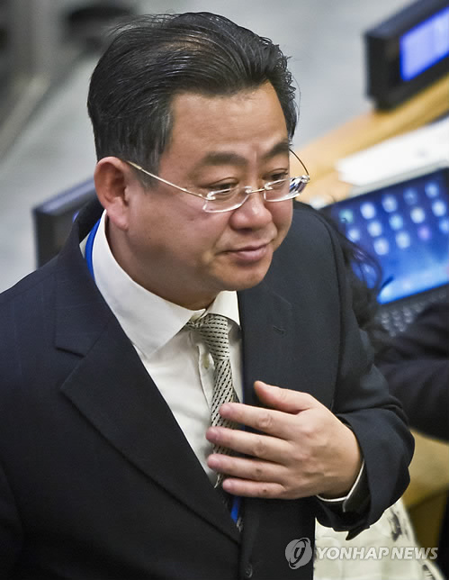 △ (서울=연합뉴스) 유엔총회가 북한인권결의안을 채택한 작년 11월 18일(미국 현지시간) 총회 회의장의 최명남 북한 외무성 부국장. 최 부국장은 결의안 채택 직후 추가 핵실험 가능성을 거론했다. AP통신 사진. <<자료사진>>