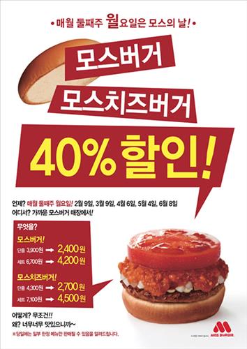 <쇼핑정보> 모스버거, 매달 둘째 월요일 '모스의 날' 할인
