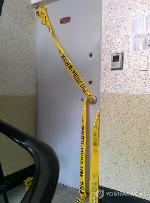 | △ 굳게 닫힌 아파트 대문 (포항=연합뉴스) 김준범 기자 = 경북 포항의 한 아파트에서 60대·40대 모녀가 목을 매 숨진 채 발견됐다. 경찰은 주변 정황으로 미뤄 이들이 3~4개월 전에 숨진 것으로 보고 수사를 벌이고 있다. |