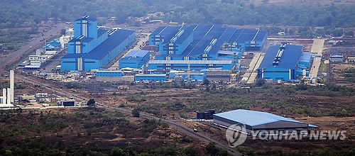 | △ 포스코, 연간 180만t 생산 규모 인도 냉연강판공장 준공 (서울=연합뉴스) 포스코가 22일 인도 마하라슈트라 주 빌레바가드 산업단지에 준공한 연간 180만t 생산 규모의 자동차용 냉연강판 공장 전경. 2015.1.22 << 포스코 제공 >> photo@yna.co.kr |