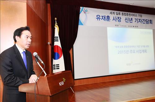 (서울=연합뉴스) 윤선희 기자 = 유재훈 한국예탁결제원 사장은 5일 "민간 경영에 대비해 다각화와 국제화에 나서 시장성 있는 세계 일류 종합증권서비스 기업으로 도약하는 계기를 마련하겠다"고 말했다.