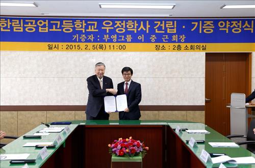 이 회장은 5일 제주시 한림공고와 서귀포시 삼성여고를 방문해 다목적 기숙사인 '우정학사'에 대한 신축·기증 약정식을 가졌다고 부영그룹이 밝혔다.