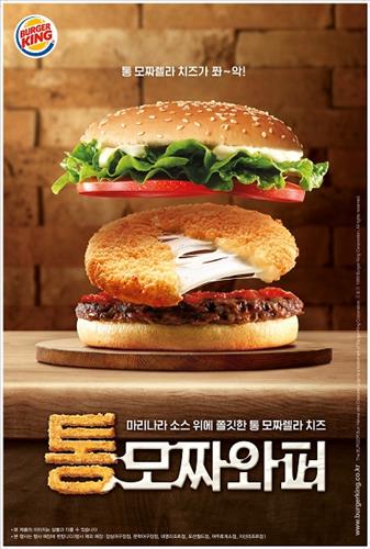 (서울=연합뉴스) 김아람 기자 = 버거킹은 대표 메뉴인 와퍼에 모짜렐라 치즈를 가미한 '통모짜와퍼'를 출시했다고 6일 밝혔다.