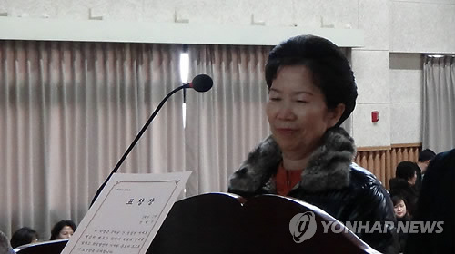 △ 중학교 졸업하는 왕언니 성락순씨 (청주=연합뉴스) 6일 청주시 원봉중학교에서 열린 졸업식에서 성락순(62)씨가 표창장을 받고 있다. 초등학교를 졸업하지 못한 성씨는 배움에 대한 열정을 포기하지 않고 2012년 이 중학교에 입학, 3년간의 교육과정을 마치고 이날 졸업했다. 2015.2.6 <<원봉중학교 제공>> vodcast@yna.co.kr