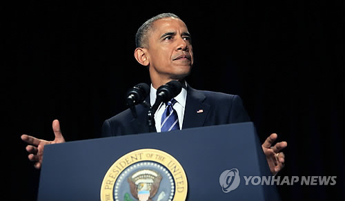 | △ 2월5일(현지시간) 미국 워싱턴DC의 한 호텔에서 열린 국가조찬기도회에서 연설하는 버락 오바마 미국 대통령. |