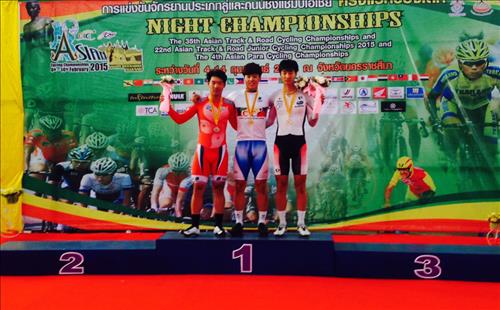 | △ 2015 사이클 아시아선수권대회에서 남자 개인추발 금메달을 수확한 박상훈(가운데) |