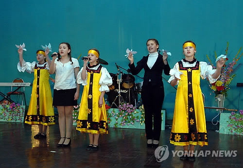 △ 북한-러시아 경제문화협정 65주년 (평양 조선중앙통신=연합뉴스) 북한과 러시아의 경제문화협정 체결 65주년을 맞아 친선모임이 2일 모란봉제1중학교에서 열렸다고 조선중앙통신이 보도했다. 2014.4.2 jjaeck9@yna.co.kr