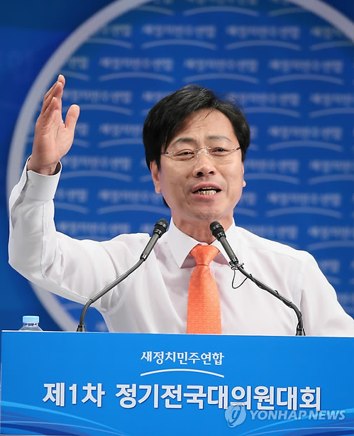 | △ 오영식 최고위원 후보자 연설 (서울=연합뉴스) 진성철 기자 = 오영식 최고위원 후보자가 8일 서울 송파구 올림픽체조경기장에서 열린 새정치민주연합 제1차 정기전국대의원대회에서 후보자연설하고 있다. 2015.2.8 zjin@yna.co.kr |