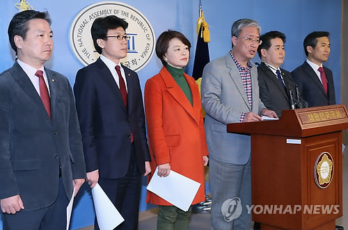 △ 야당 국무총리후보자 인사청문회 특위 기자회견 (서울=연합뉴스) 진성철 기자 = 유성엽 간사 등 야당 이완구 국무총리 후보자 인사청문회 특위위원들이 8일 국회 정론관에서 기자회견하고 있다. 왼쪽 부터 홍종학, 진성준, 진선미, 유성엽, 김경협, 김승남 의원.