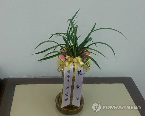 (서울=연합뉴스) 정윤섭 기자 = 박근혜 대통령은 9일 새로 선출된 새정치민주연합 문재인 대표에게 난을 보내 축하의 뜻을 전달했다.