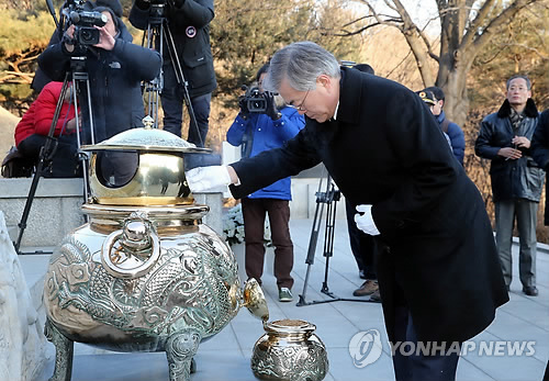 | △ 고(故) 박정희 전 대통령 묘역 참배하는 문재인 (서울=연합뉴스) 이상학 기자 = 새정치민주연합 문재인 대표가 9일 오전 동작구 국립서울현충원 고(故) 박정희 전 대통령 묘역을 참배하고 있다. |