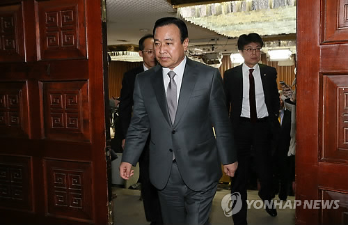 △ 청문회장 나서는 이완구 (서울=연합뉴스) 진성철 기자 = 이완구 국무총리 후보자가 10일 국회에서 열린 인사청문회에서 음성파일 공개 논란으로 정회되자 잠시 자리를 떠나고 있다.