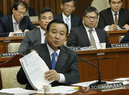 | △ 자료 들어보이는 이완구 총리 후보자 (서울=연합뉴스) 이상학 기자 = 이완구 국무총리 후보자가 11일 오전 국회에서 열린 인사청문회에서 답변 자료를 들어보이고 있다. |