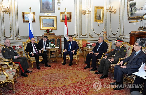 (카이로=연합뉴스) 한상용 특파원 = 블라디미르 푸틴 러시아 대통령과 압델 파테 엘시시 이집트 대통령이 양국간 경제·군사 협력을 강조하는 모습을 보이면서 양국이 의도적으로 서방에 등을 돌리려 하는 게 아니냐는 분석을 낳고 있다.