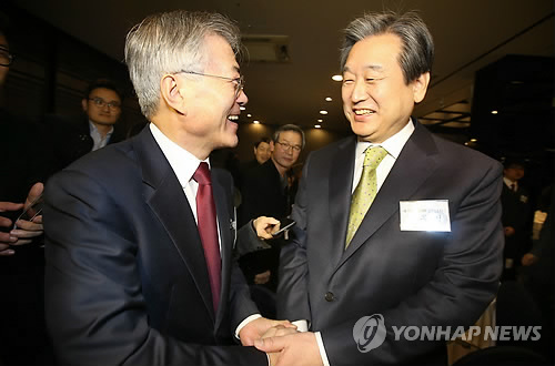 <김무성 "잘 부탁한다"…문재인 "잘 되길 바란다">