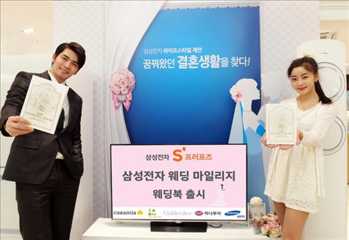 (서울=연합뉴스) 현혜란 기자 = 삼성전자[005930]는 가구·예물·패션·여행사와 손잡고 예비 신혼부부를 위한 상품화보집 '웨딩북'을 마련했다고 12일 밝혔다.