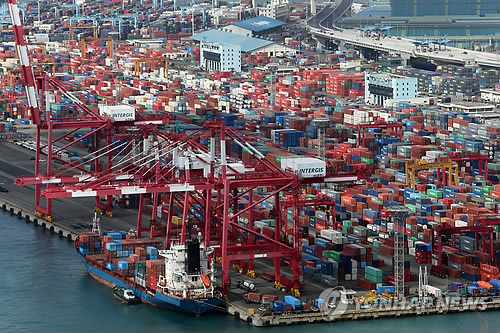 | △ 부산 감만부두 수출화물 선적 <연합뉴스 DB> |