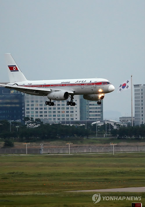 △ <아시안게임 D-8> 인천공항에 착륙하는 고려항공 여객기 (영종도=연합뉴스) 김주성 기자 = 인천 아시안게임에 출전할 북한 선수단 선발대를 태운 고려항공 여객기가 11일 오후 인천공항 활주로에 내려앉고 있다. 북한 선수단 선발대 94명은 장수명 올림픽위원회(NOC) 대표와 임원, 축구·조정 관련 선수 및 코칭스태프, 심판진, 의료진, 기자단 등으로 구성됐다. 2014.9.11 utzza@yna.co.kr