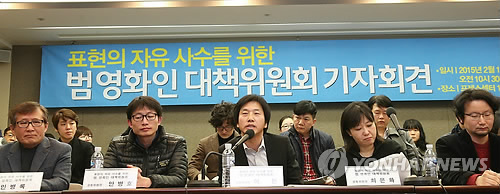 한국영화제작가협회·한국영화감독조합 등 70여개 영화계 단체와 영화제 등으로 구성된 '표현의 자유 사수를 위한 범영화인 대책위원회'(이하 대책위)는 13일 프레스센터에서 기자회견을 열어 "표현의 자유를 훼손하려는 모든 시도를 중단하라"고 주장했다.