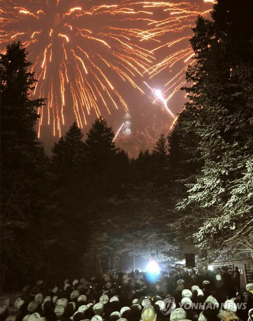 △ 북한, 백두산 밀영서 '김정일 생일' 기념 축포 (서울=연합뉴스) 북한 노동당 기관지 노동신문은 12일 백두산 밀영에서 김정일의 생일을 기념하는 결의대회가 열렸다고 13일 밝혔다. 이날 결의대회에서는 김기남 당비서, 현영철 인민무력부장 등이 연설자로 나서 김정일 국방위원장의 '업적'을 치켜세웠으며 축포 행사 등도 열려 분위기를 고조시켰다. 2015. 2. 13 nkphoto@yna.co.kr