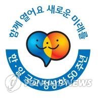 △ 한일, 국교정상화 50주년 기념행사 추진 (서울=연합뉴스) 한일 양국 정부가 국교정상화 50주년을 맞아 기념행사를 추진하기로 했다고 외교부가 13일 밝혔다. 외교부는 이날 보도자료를 통해 "금년을 '한·일 국교정상화 50주년'으로 지정, 양국 국민간 교류·협력을 증진시키기 위한 다양한 기념행사를 추진하기로 했다"고 밝혔다. 기념행사 로고 및 표어.