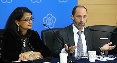 △ 의견 말하는 애잇큰 IMF 협의단장 (서울=연합뉴스) 황광모 기자 = 13일 오후 서울 세종로 정부서울청사에서 열린 2015년IMF 연례협의 결과 브리핑에서 브라이언 애잇큰 IMF 협의단 단장이 한국 경제와 관련한 IMF의 의견을 발표하고 있다.