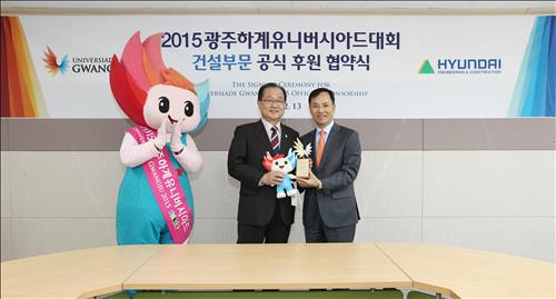 현대건설은 지난 13일 2015 광주하계유니버시아드대회 조직위원회 회의실에서 건설부문 공식 후원 협약을 체결했다고 15일 밝혔다.