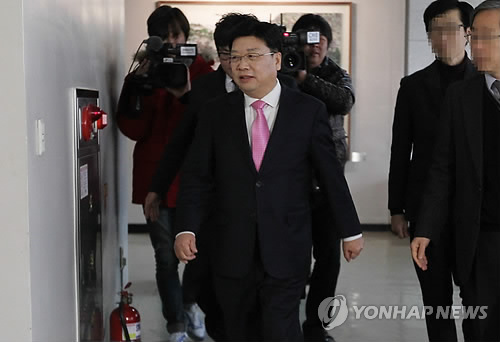 | △ 법정 들어서는 대전시장 (대전=연합뉴스) 이재림 기자 = 공직선거법 위반 혐의 등으로 기소된 권선택 대전시장이 29일 오전 대전지방법원 316호 법정에 들어서고 있다. 권 시장은 2012년 10월 최측근과 공모해 대전미래경제연구포럼을 만든 뒤 사실상 선거운동 조직으로 운영하며 사전 선거운동을 벌인 혐의 등을 받고 있다. 2015.1.29 walden@yna.co.kr |