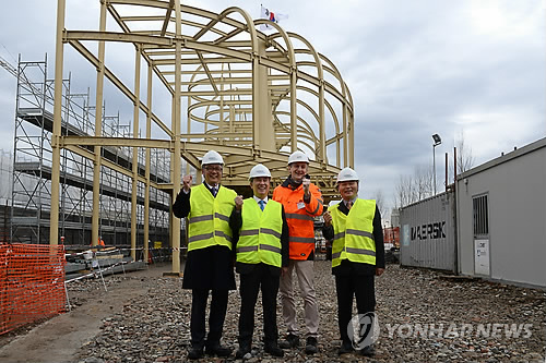 (파리=연합뉴스) 박성진 특파원 = 한국관광공사는 16일(현지시간) 이탈리아 밀라노에서 2015 밀라노엑스포 한국관 건축공사 안전기원식을 개최했다.