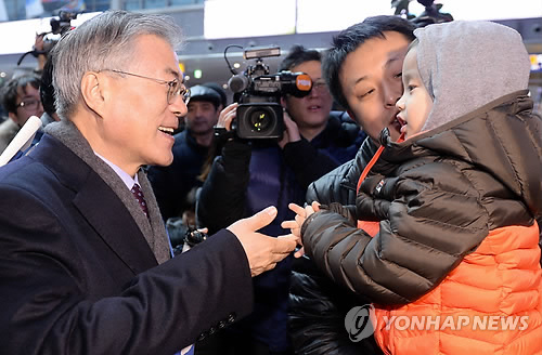 | △ 새정치연합 문재인 대표, 용산역 귀성객 인사 (서울=연합뉴스) 홍해인 기자 = 새정치민주연합 문재인 대표가 설 명절 연휴를 하루 앞둔 17일 오전 서울 한강로3가 용산역 대합실에서 귀성 열차를 기다리는 가족과 인사하고 있다. 2015.2.17 hihong@yna.co.kr |