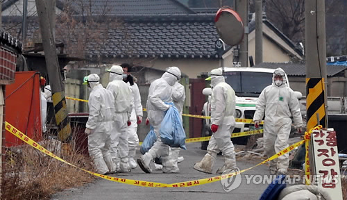 | △ 방역당국이 AI가 발생한 농가에서 사육되던 오리 등 조류를 살처분해 포대에 담은 뒤 매몰하기 위해 옮기고 있다. (연합뉴스 자료사진) |