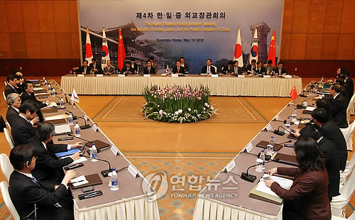 △ 지난 2010년 경주 힐튼호텔에서 열린 한ㆍ일ㆍ중 외교장관회의 (연합뉴스 자료사진)